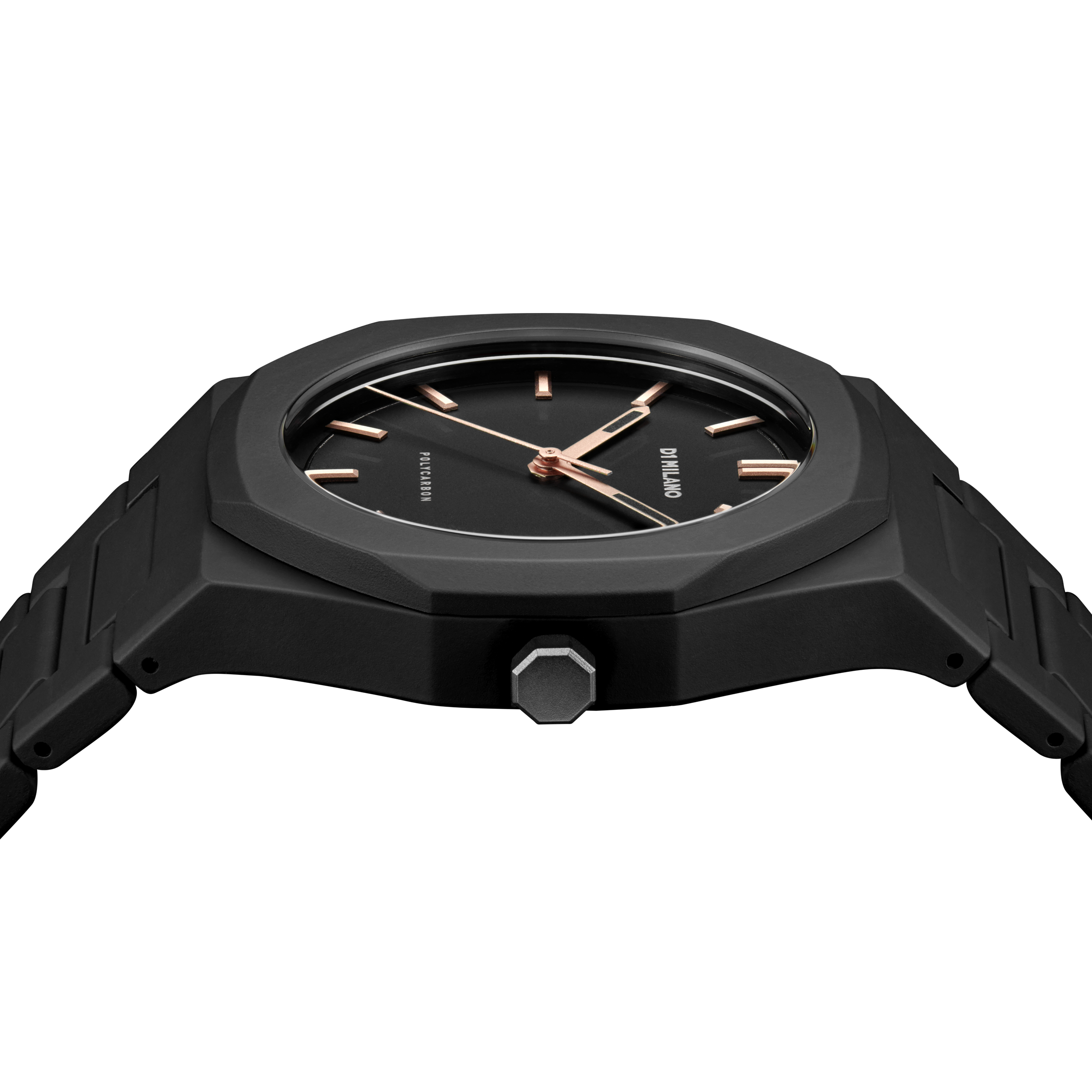 D1 Milano bestseller watch has a new look! With a case only 8.80 mm thick, Black Luminova on the hands and the iconic soft touch, the PolyCarbon now has not only the perfect look, but also the perfect fit.